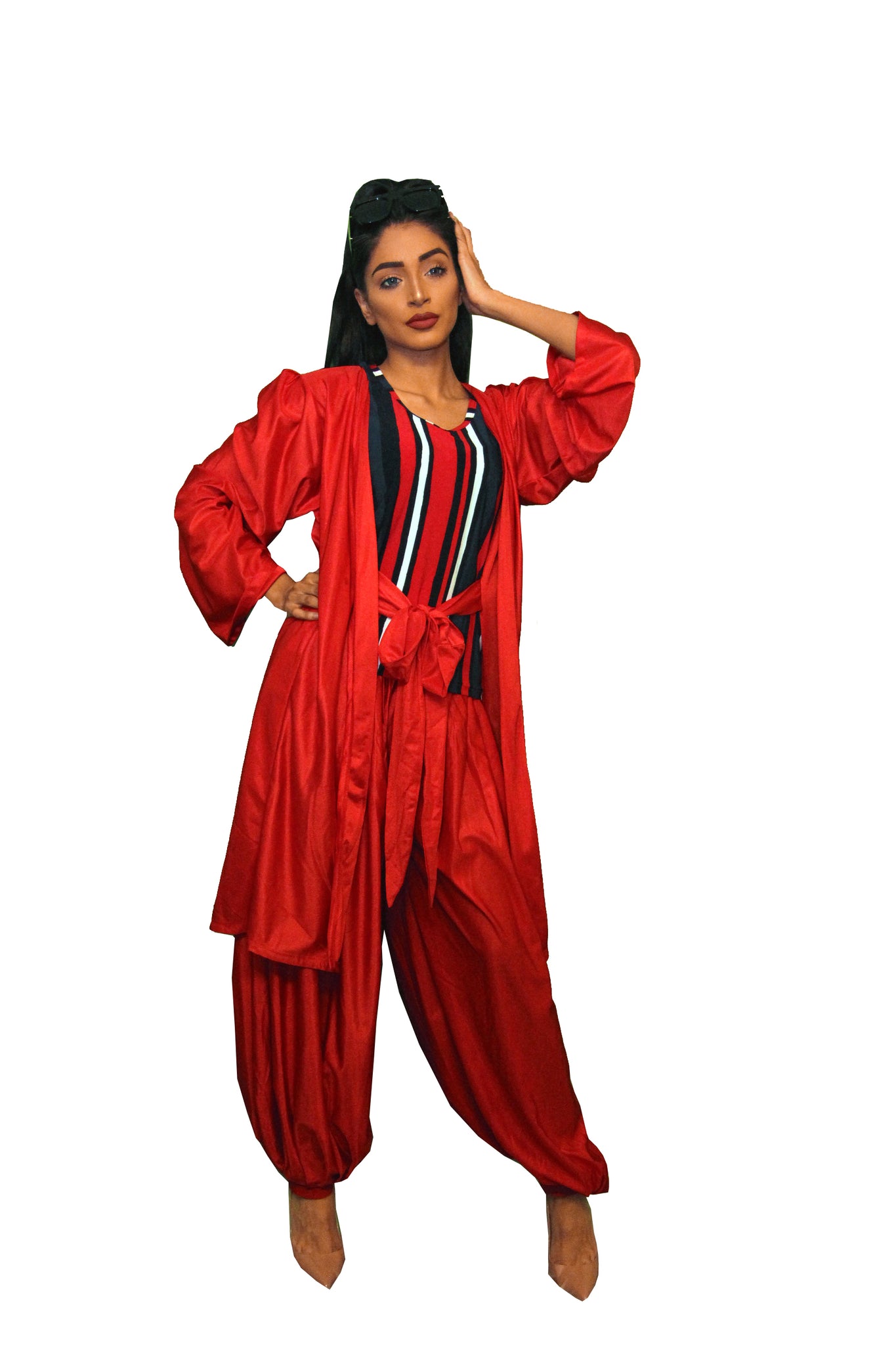 Long Jacket with Ali baba Trousers and Stripe Top Set.
