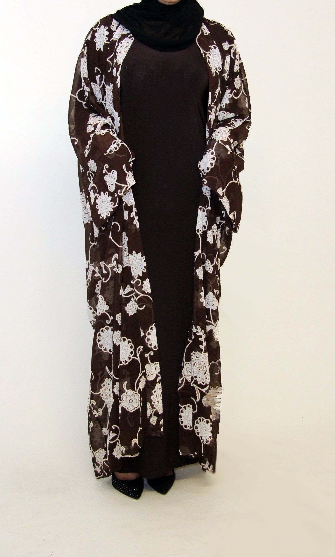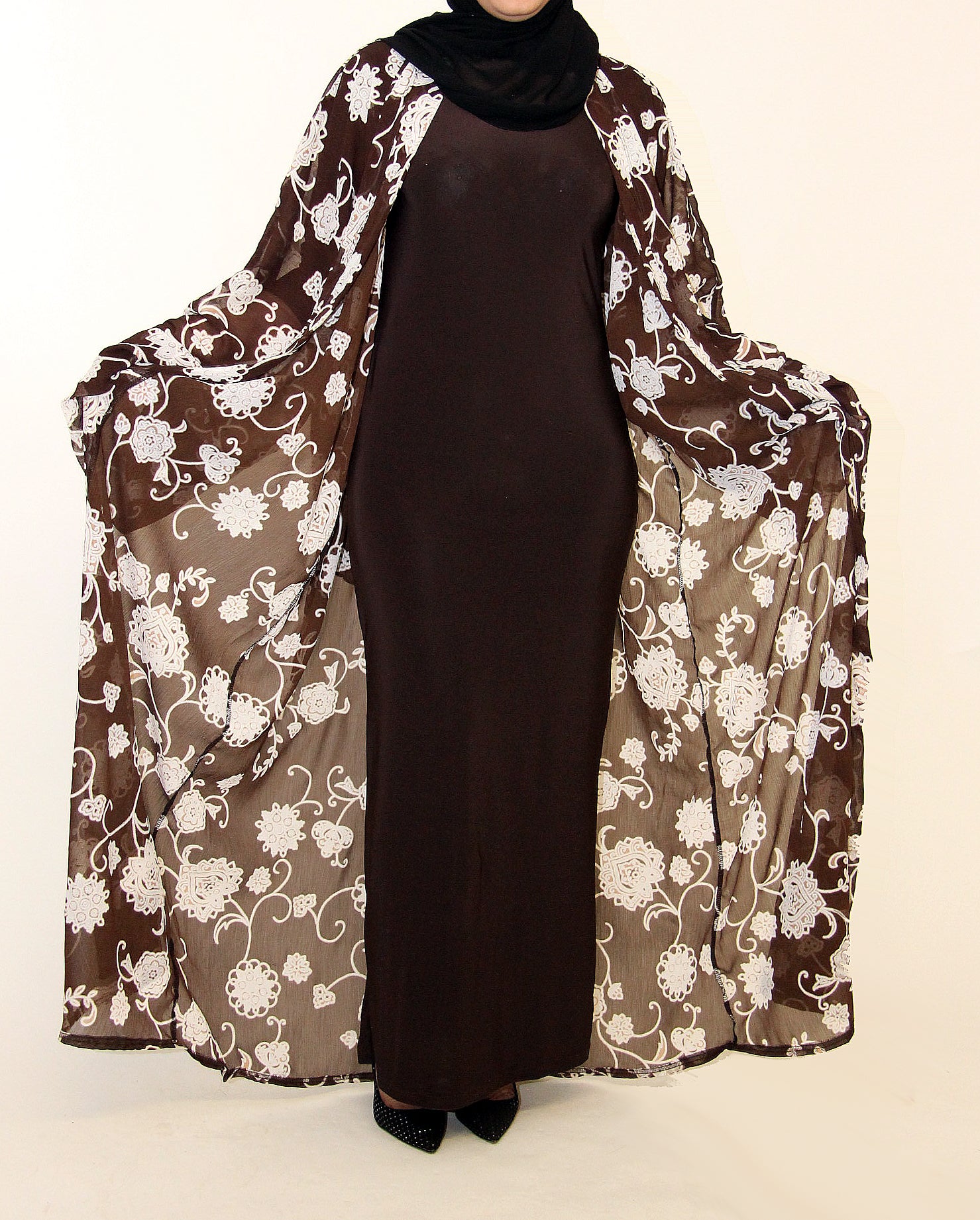 Suhana Floral Chocolate Brown Abaya - nice way to add a fashionable sense to every outfit. Wear yours with low-key accessories, to create an updated, figure-flattering look.